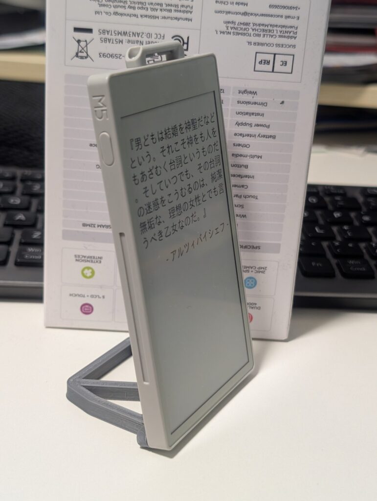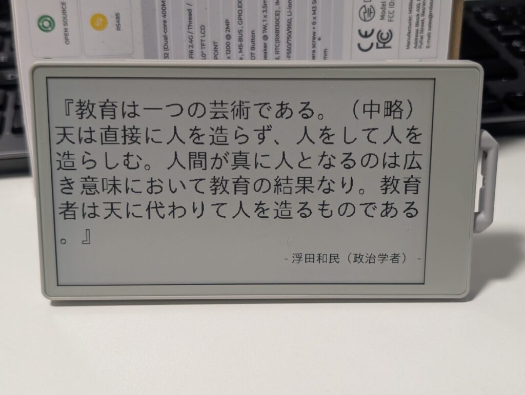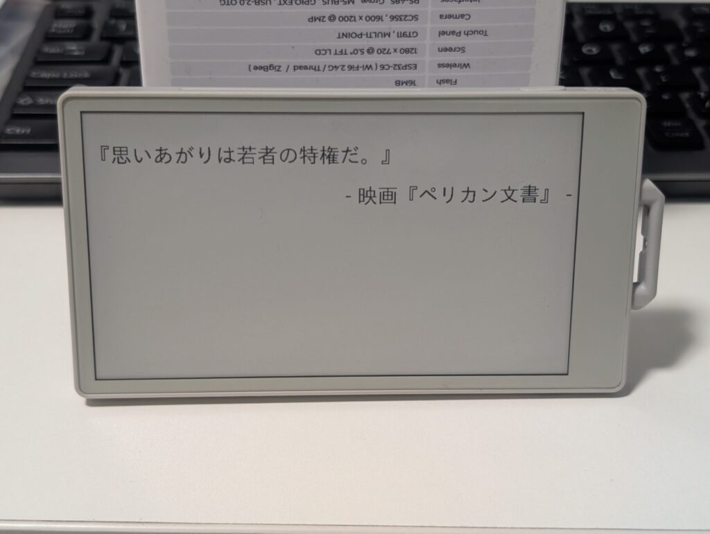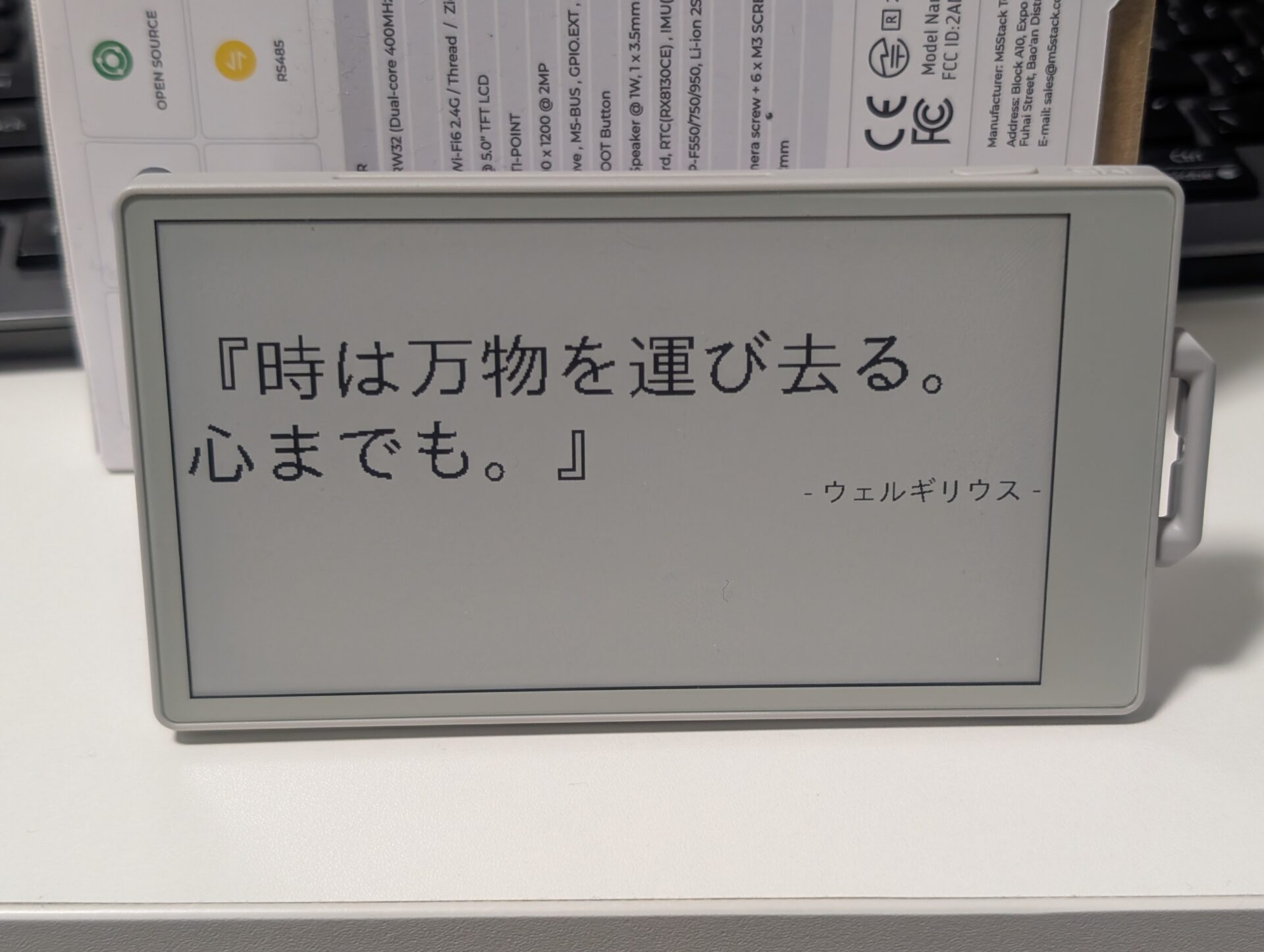 前回、電子ペーパーディスプレイ搭載のM5PaperS3を使って時計を作りましたが、今回は定期的に名言を表示してくれるディスプレイを作ります。